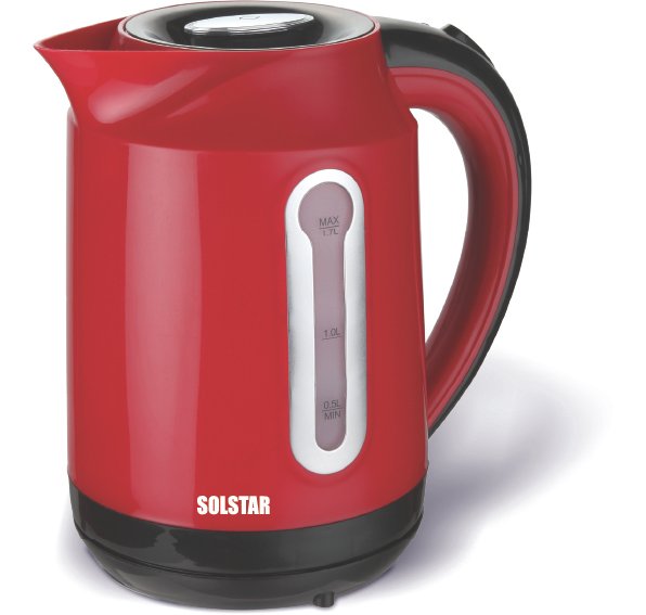 Solstar KJ 1737A-RDB SS 1.7L Electric Kettle 2200W Red with Concealed Heating Element and 360° Cordless Rotation Base
